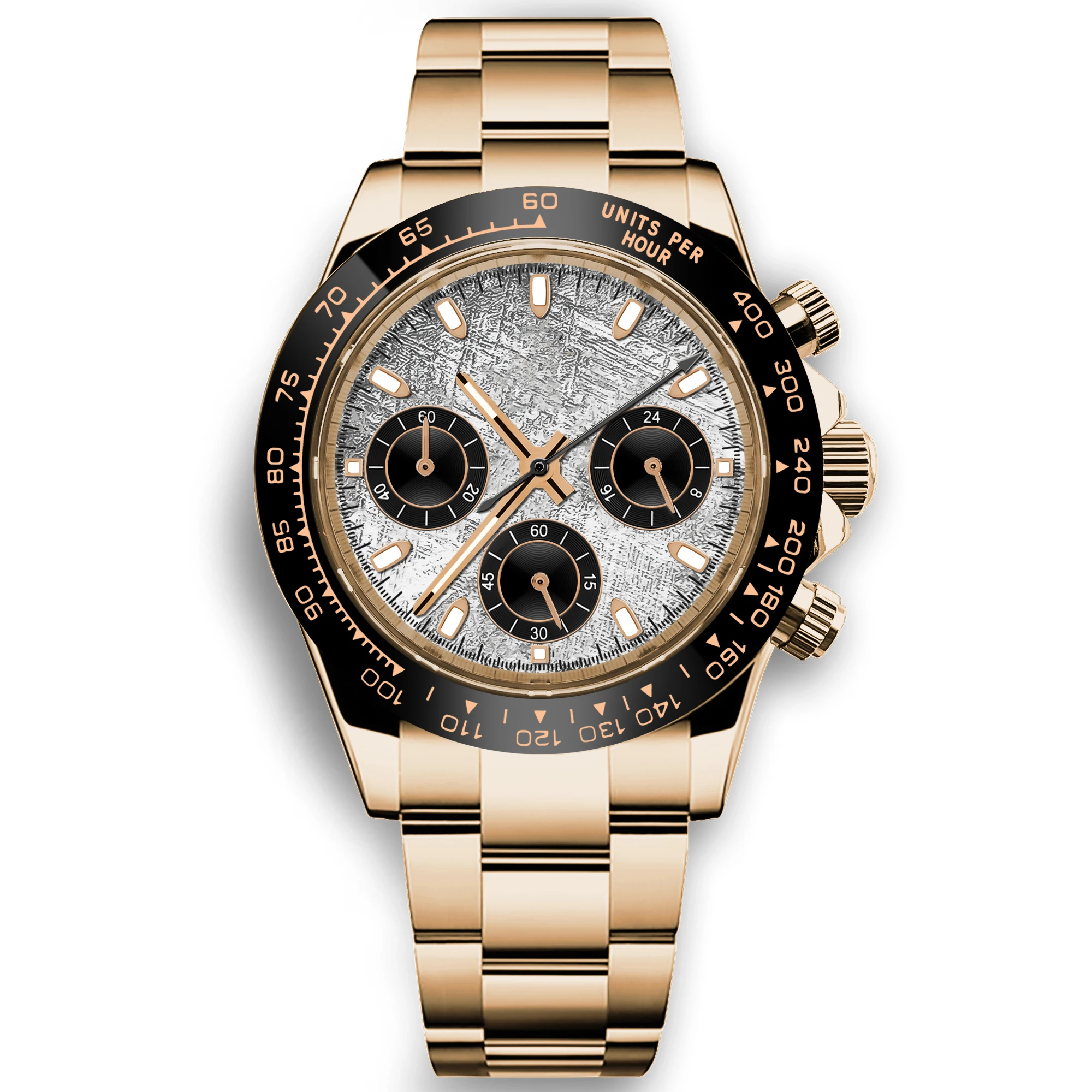Movement : Japanese quartz movement Full functional chronographCase diameter : 40mmCase thickness : 13mmFunction :Pusher button at 2:00 Starts/stops chronographPusher button at 4:00 resets chronographRunning Second at:6:00 o’clockChronograph minute at 9:00 o’clock24 hours at 3:00 o’clockWide of Strap : 20mm strapGlass : SAPPHIRE CRYSTAL